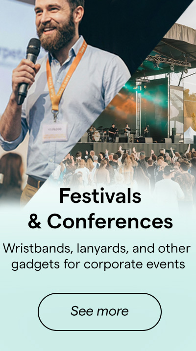 Vibrant festival-vibe merch – lanyards, bands & more.