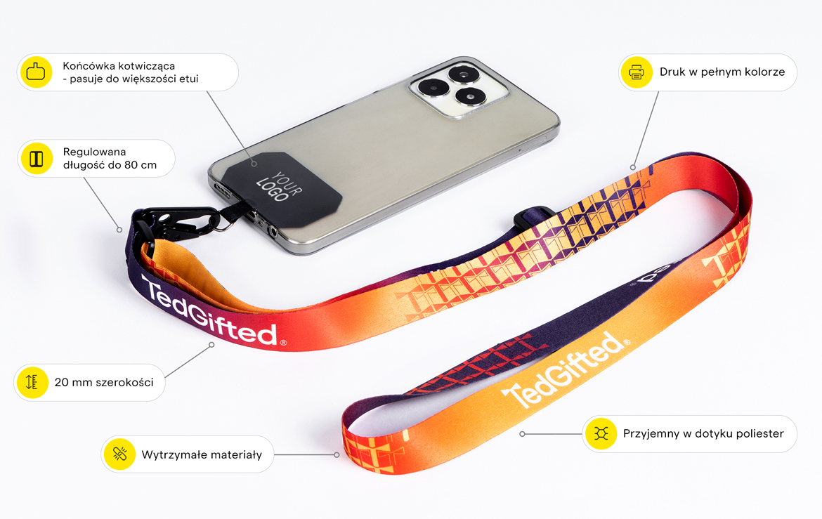 Dzięki kilku możliwościom noszenia smyczy użytkownik może zoptymalizować sposób noszenia swojego smartfona. To od niego zależy, czy smycz będzie nosił przewieszoną przez ramię (crossbody), na szyi czy w kieszeni.
